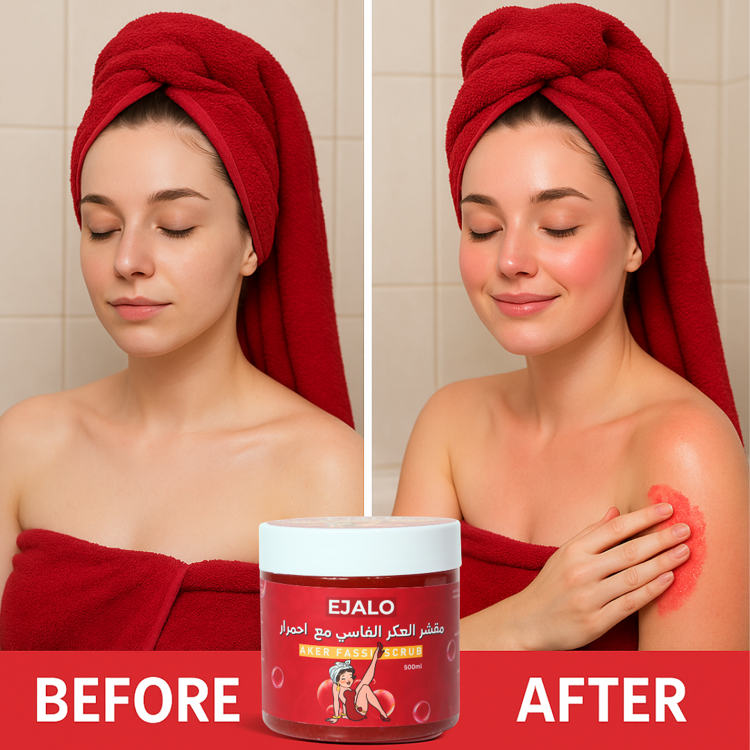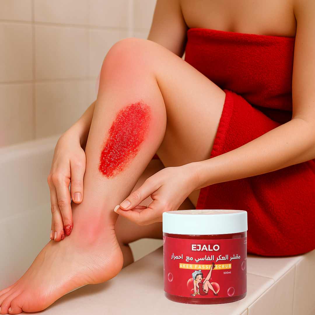 احصلي على بشرة بلون وردي مثير مع مقشر العكر فاسي، المصمم خصيصًا لمنح جسمك توريدا طبيعيًا و نعومة واضحًا من أول استخدام.