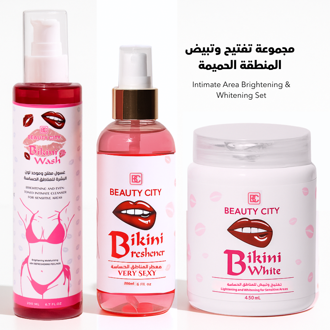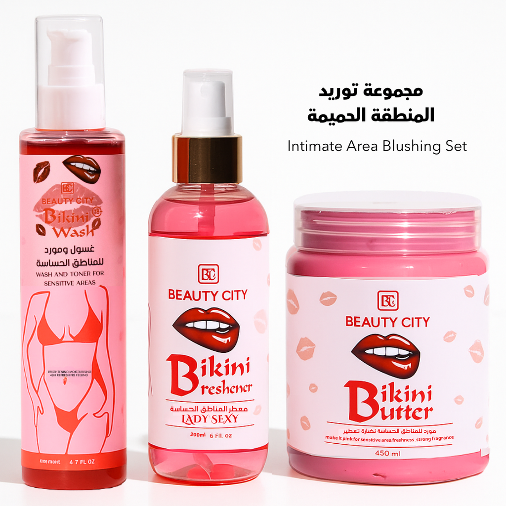 مجموعة العناية بالمنطقة الحميمية البكيني، كل مجموعة مصممة بعناية لتلبية هدف محدد: سواء توريد، تفتيح، أو إضفاء رائحة فرمونية جذابة تحتوي على ٣ منتجات أساسية: غسول لطيف ينظف ويرطب، كريم فاخر يعتني بالبشرة، ومعطر فرموني يترك أثرًا لا يُقاوم