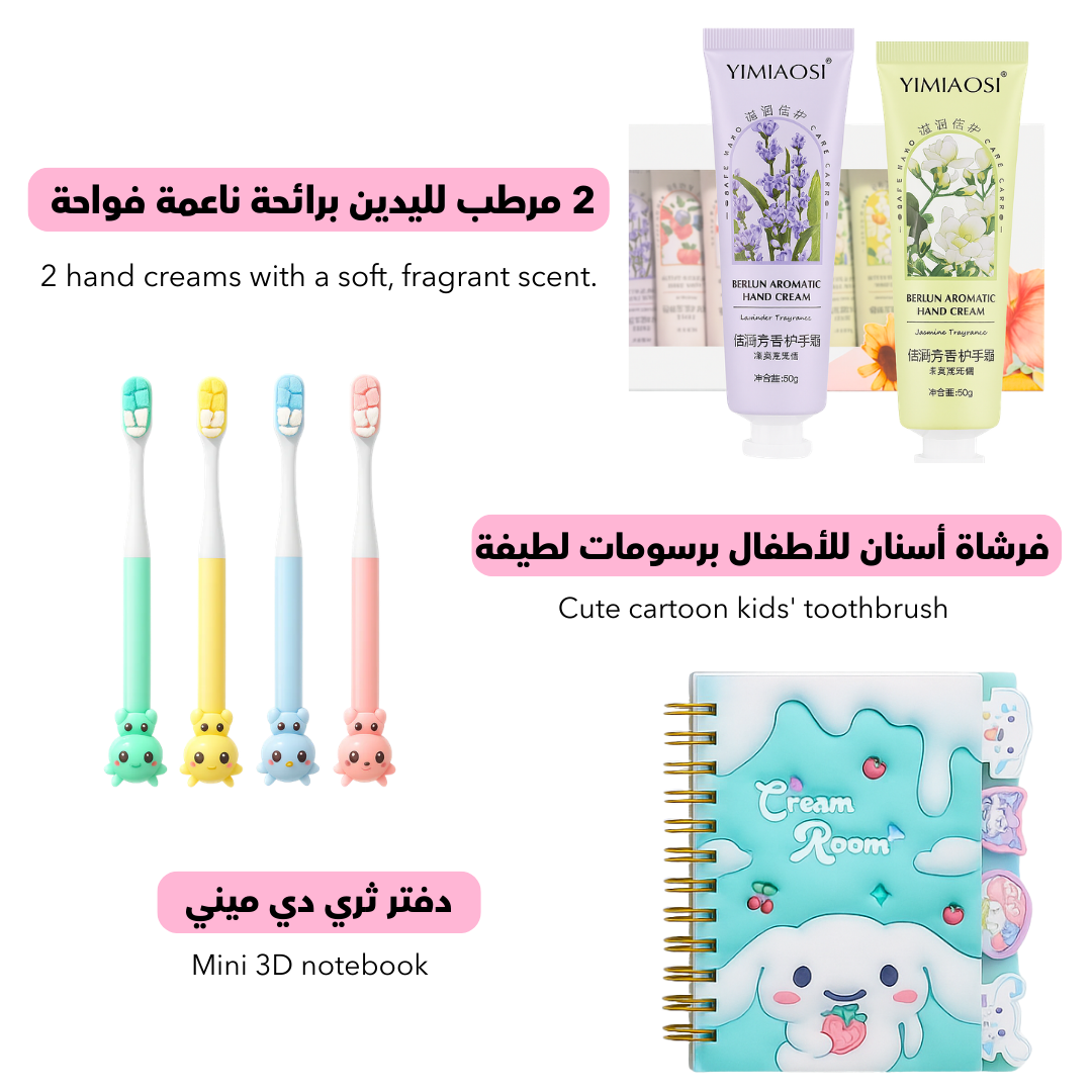 بوكسنا الجديد للبنوتات الصغيرات مليان ألوان وحيوية، يجمع بين المرح والعناية اليومية بأسلوب لطيف وممتع، مصمم خصيصًا للعناية المتكاملة بطريقة جميلة ولطيفة ليكون هدية مميزة ومفرِحة من أول نظرة.