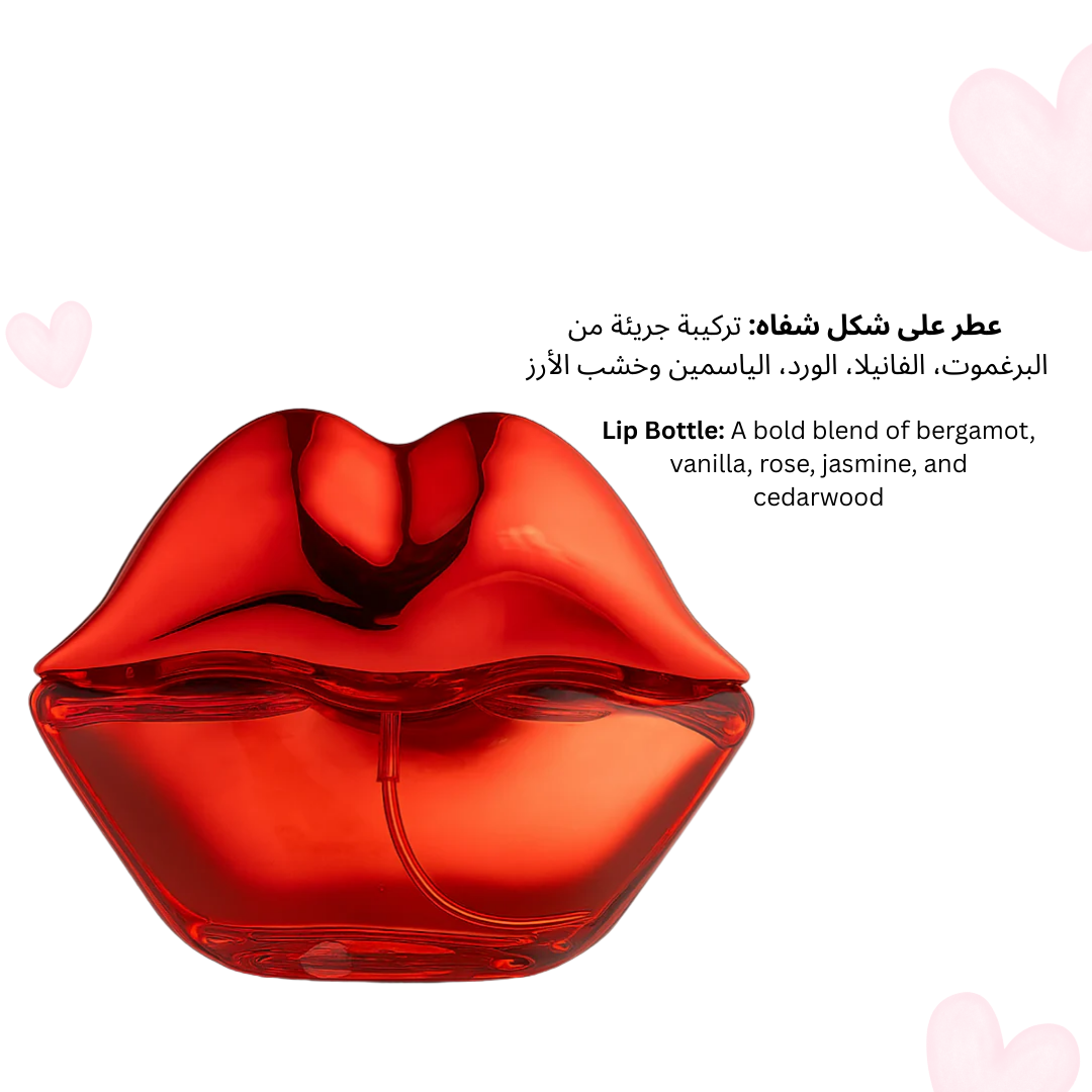 Lip Bottle: A bold fragrance blended with bergamot, vanilla, rose, jasmine, and cedarwood.