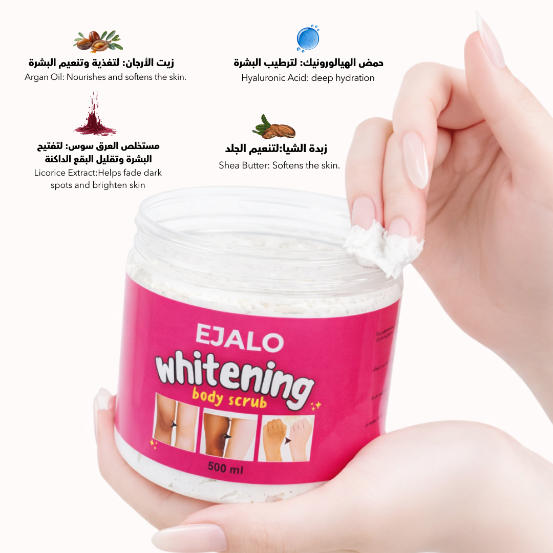 A body whitening scrub with an advanced formula that helps lighten dark spots, reduce hyperpigmentation, and unify skin tone—leaving your skin soft, healthy, and naturally radiant.